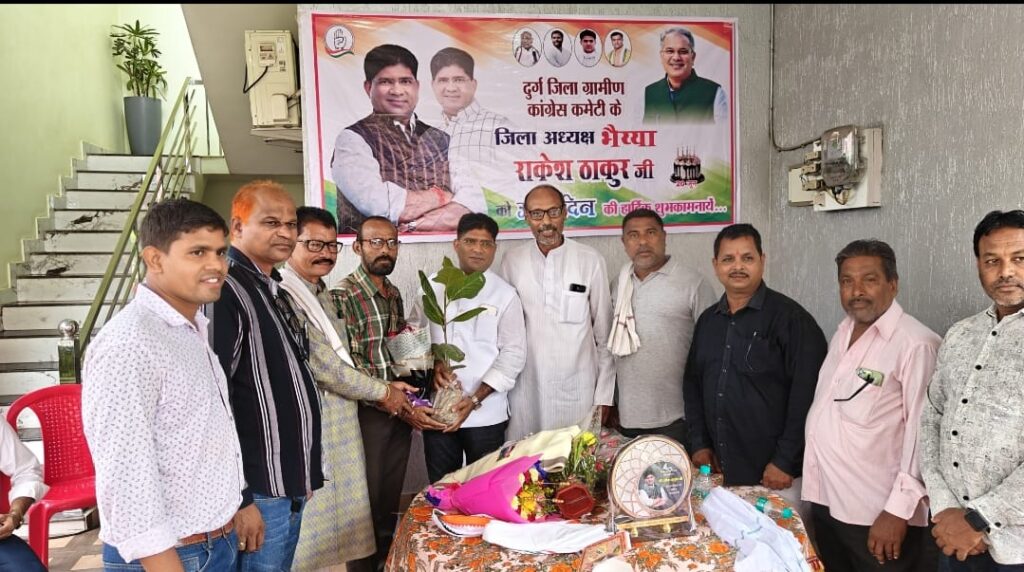 दुर्ग। जिला कांग्रेस कमेटी दुर्ग ग्रामीण अध्यक्ष राकेश ठाकुर के 47वें जन्म पर आज दुर्ग जिले के कांग्रेस नेता और उनके समर्थक बधाई देने उनके गृह ग्राम धौराभांठा पहुंचकर उनके दीर्घायु होने की कामना किए।