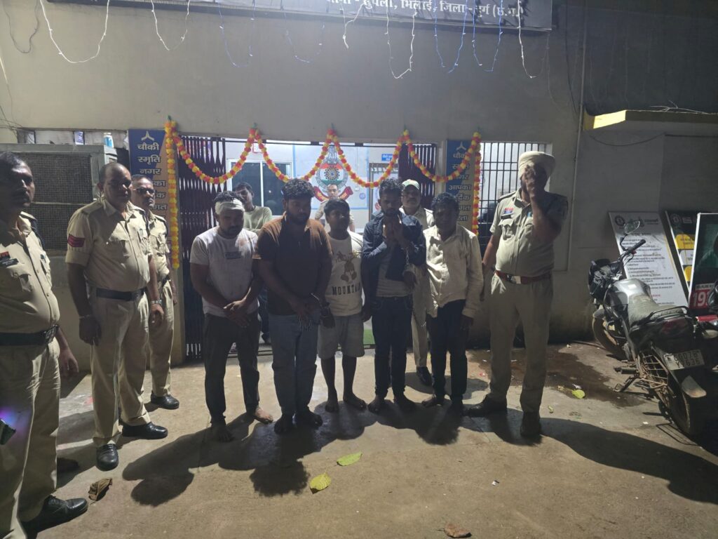 जिसका विरोध करने पर सुजीत साव द्वारा अपने अन्य साथी एवं रिस्तेदारों को बुलाकर उनके साथ मारपीट किया जा रहा था जिसकी सूचना पर स्मृतिनगर पुलिस पेट्रोलिंग मौके पर पहुंचकर दोनों पक्षों को समझाइयीस दी जा रही थी इसी दौरान आरोपी सुजीत साव एवं उसके रिस्तेदार शिवपुजन कुमार, जिगर साव ,सुजीत कुमार तथा दिनेश कुमार साव के द्वारा पुलिस के शासकीय कार्य में बाधा उतपन्न करते हुये पुलिस अधिकारी /कर्मचारियों के साथ मारपीट किया गया है। तत्संबंध में थाना सुपेला चौकी स्मृतिनगर में प्रार्थिया से छेड़छाड़ कर मारपीट करने से संबंधित अपराध क्रमांक 1273/2025 धारा 74,121,191,351(3),115(2),221,132 बीएनएस कायम किया गया एवं शासकीय कार्य में बाधा डालते हुए पुलिस कर्मियों से मारपीट करने से संबंधित अपराध क्रमांक 1275/25 धारा 121,221,132,191 बीएनएस कायम कर विवेचना में लिया गया प्रकरण की गंभीरता को देखते हुये तत्काल थाना प्रभारी विजय कुमार यादव एवं चौकी स्मृति नगर के प्रभारी उप निरीक्षक गुरूविन्दर सिंह संधु द्वारा आरोपीयों की पता तलाश कर मुख्य आरोपी (1)सुजीत साव पिता शारदा प्रसाद उम्र 49 साल साकिन दुर्ग रोड़ कोहका चौकी स्मृतिनगर( 2)सुजीत कुमार पिता मकसुधन साव उम्र 32 साल साकिन सनातन नगर सिन्हा भवन के पास कोहका चौकी स्मृति नगर (3.)शिवपूजन कुमार पिता दिलीप साव उम्र 20 साल साकिन सनातन नगर सिन्हा भवन के पास कोहका चौकी स्मृति नगर (04). सागर साव पिता जगदीश प्रसाद उम्र 29 साल साकिन भाठापारा कोहका चौकी स्मृतिनगर (05). जिगर साव पिता जगदीश प्रसाद उम्र 28 साल साकिन भाठापारा कोहका चौकी स्मृतिनगर से पुछताछ किया गया जिनके द्वारा दिनांक घटना समय को धारा सदर का अपराध घटित करना कबूल किया गया है कि आरोपीयों गिरफ्तार कर न्यायिक रिमांड पर माननीय न्यायालय में प्रस्तुत किया गया है जिसे न्यायिक अभिरक्षा में केन्द्रीय जेल दुर्ग भेजा गया है।