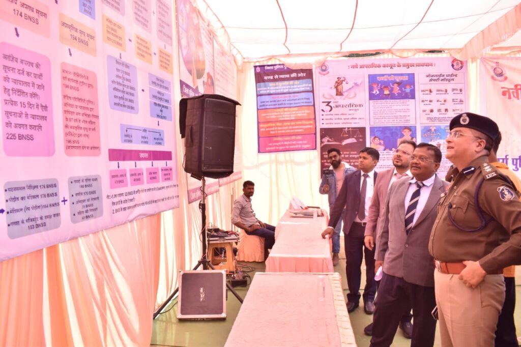जिसमें मुख्य अतिथि मान. जिला एवं सत्र न्यायाधीश, के. विनोद कुजूर व्दारा भारतीय न्याय संहिता 2023, भारतीय नागरिक सुरक्षा संहिता 2023 एवं भारतीय साक्ष्य अधिनियम 2023 के प्रावधानों से अवगत कराया गया। नवीन आपराधिक कानून के अन्तर्गत बच्चों एवं महिलाओं के विरूद्ध अपराध से निपटने के लिए शामिल किए गए धाराओं की विशेषताओं से भी अवगत कराया गया।प्रधान जिला न्यायाधीश ने नवीन कानून के प्रावधानों को लेकर विस्तार से जानकारी देते हुए प्रदर्शनी के लिए दुर्ग पुलिस की सराहना की।