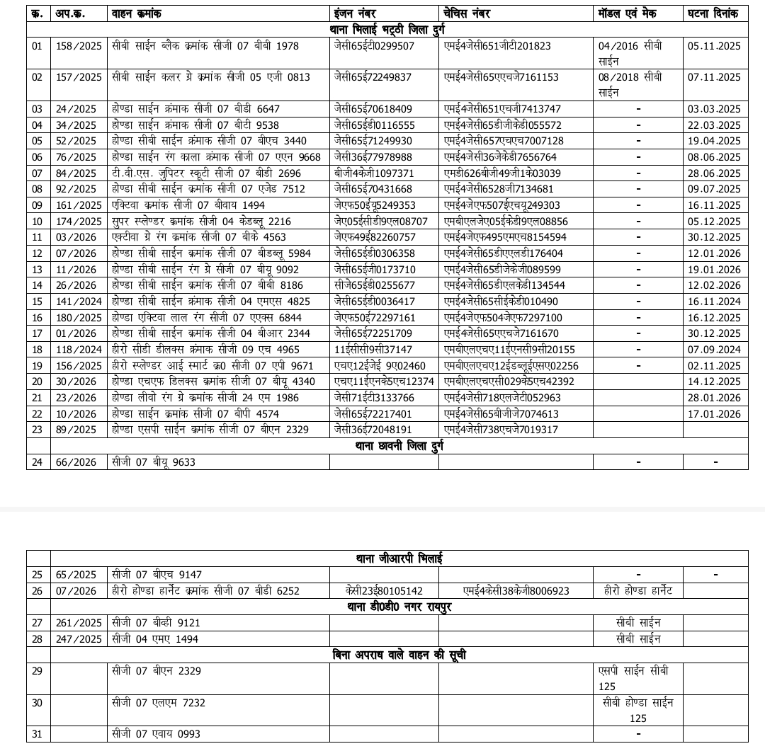 - लगभग 31 लाख रुपये मूल्य के वाहन बरामद, विभिन्न थाना क्षेत्रों की घटनाएं उजागर